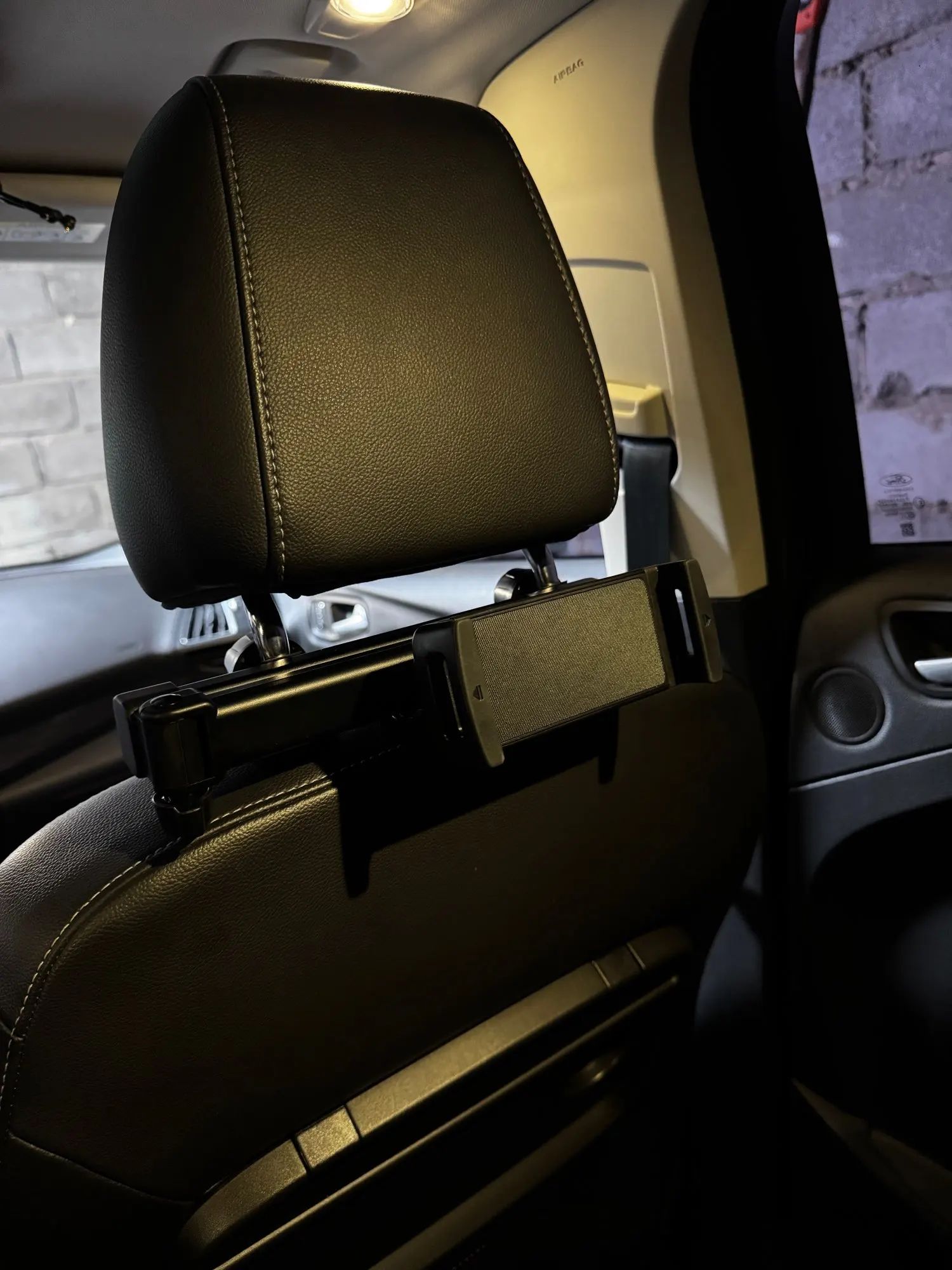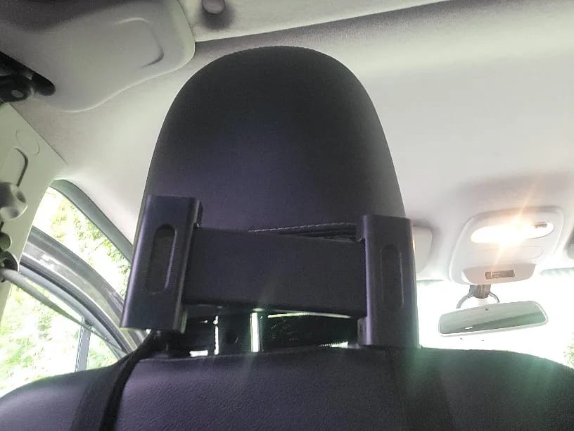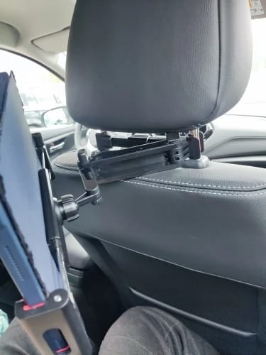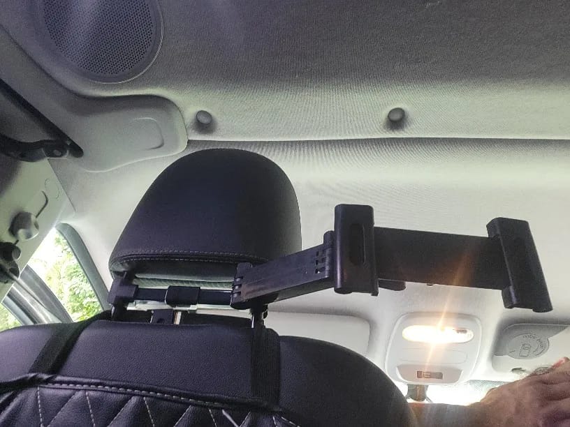 يركّب على مراية السيارة الخلفية (Rearview Mirror) — يعني مكان مثالي قدّامك، تشوف الشاشة بدون ما تغبّ.